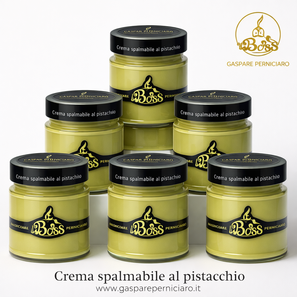Nel cuore di Sambuca di Sicilia (AG), tra le colline baciate dal sole e i profumi intensi dell’isola, nasce la Crema Spalmabile di Pistacchio firmata Il Boss Gaspare Perniciaro. Prodotta nel laboratorio artigianale di via Teatro 10/12, questa prelibatezza rappresenta l’essenza autentica della pasticceria siciliana: un equilibrio perfetto tra storia, territorio e maestria artigianale.