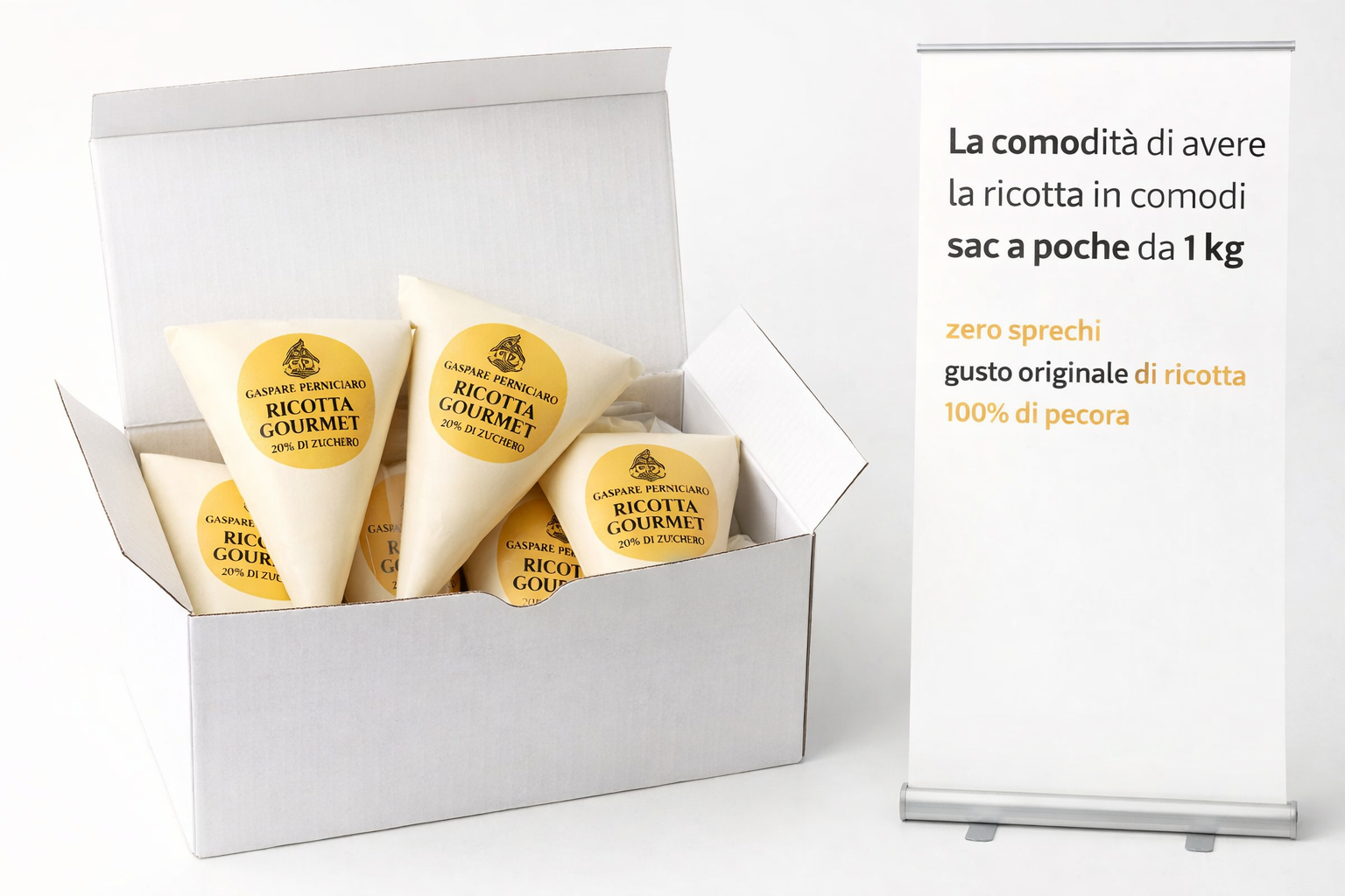 Perfetta per cannoli, cassate, cialdoni e dolci gourmet, arriva in sac à poche da 1 kg pronta all’uso, confezionata in packaging termico salva-freschezza.