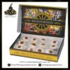 Ogni confezione da 24 dolcini imbustati singolarmente è racchiusa in un cofanetto regalo elegante, decorato con motivi ispirati all’Orlando Furioso e alle maioliche siciliane.